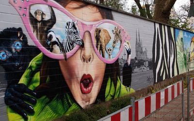 Die hässliche Mauer, die den Zoo im Osten zur Riehler Straße hin begrenzt, sollte verschönert werden. Mit einem Wettbewerb "ARTgerecht - gesprühte...
