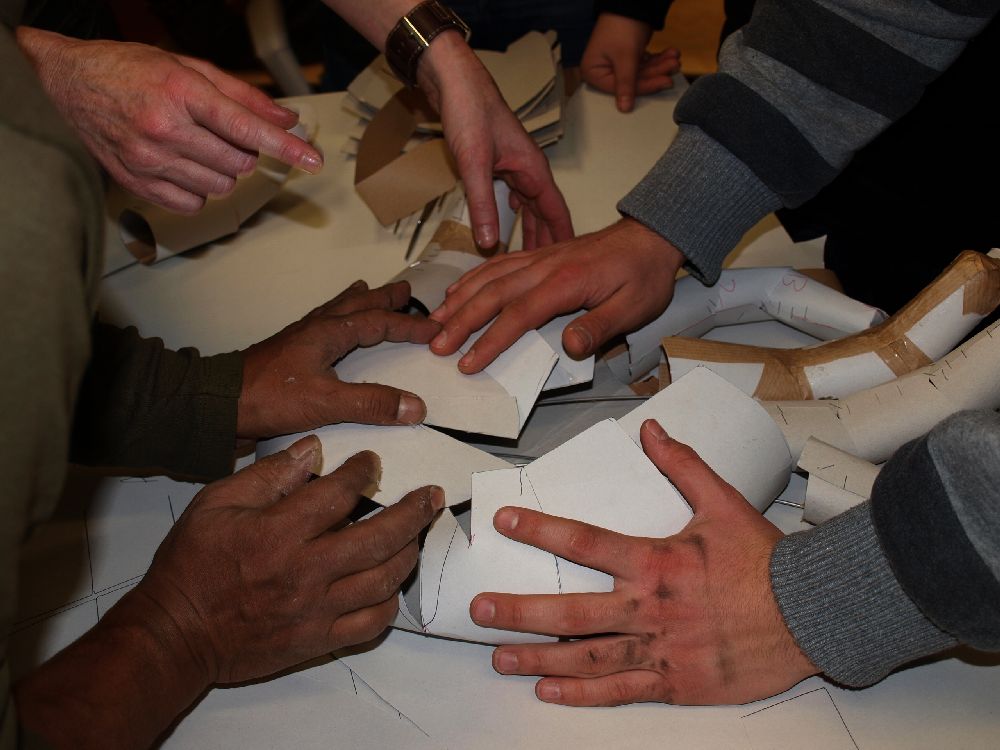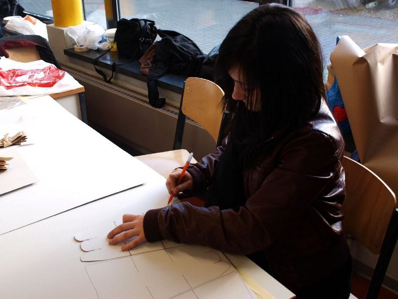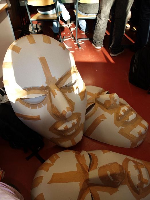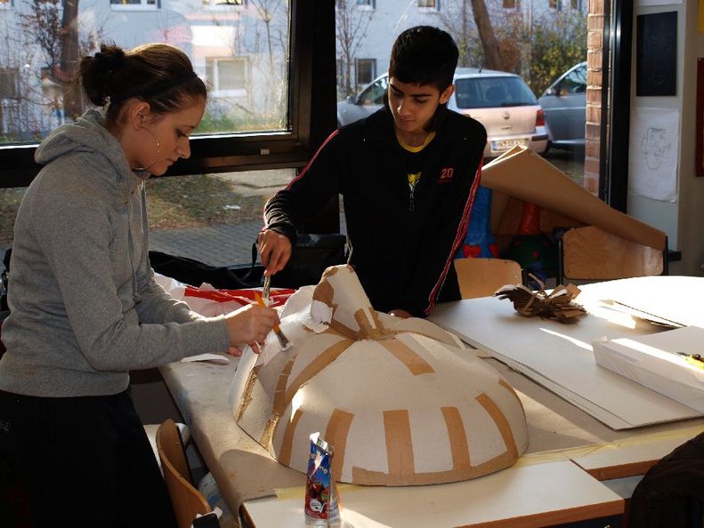"Land unter" - Künstler aus Bangladesh bauen Masken und Großfiguren mit Schüler/innen aus der Praxisstation Objektbeschichtung (Maler und Lackierer/in) in der Hauptschule Reutlinger Straße und der Praxisstation Metall an der Hauptschule Bülowstraße